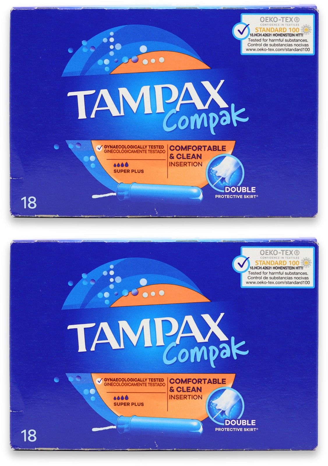 Tampax Compak Super Plus Applicator Tampons 18 Pack X 2