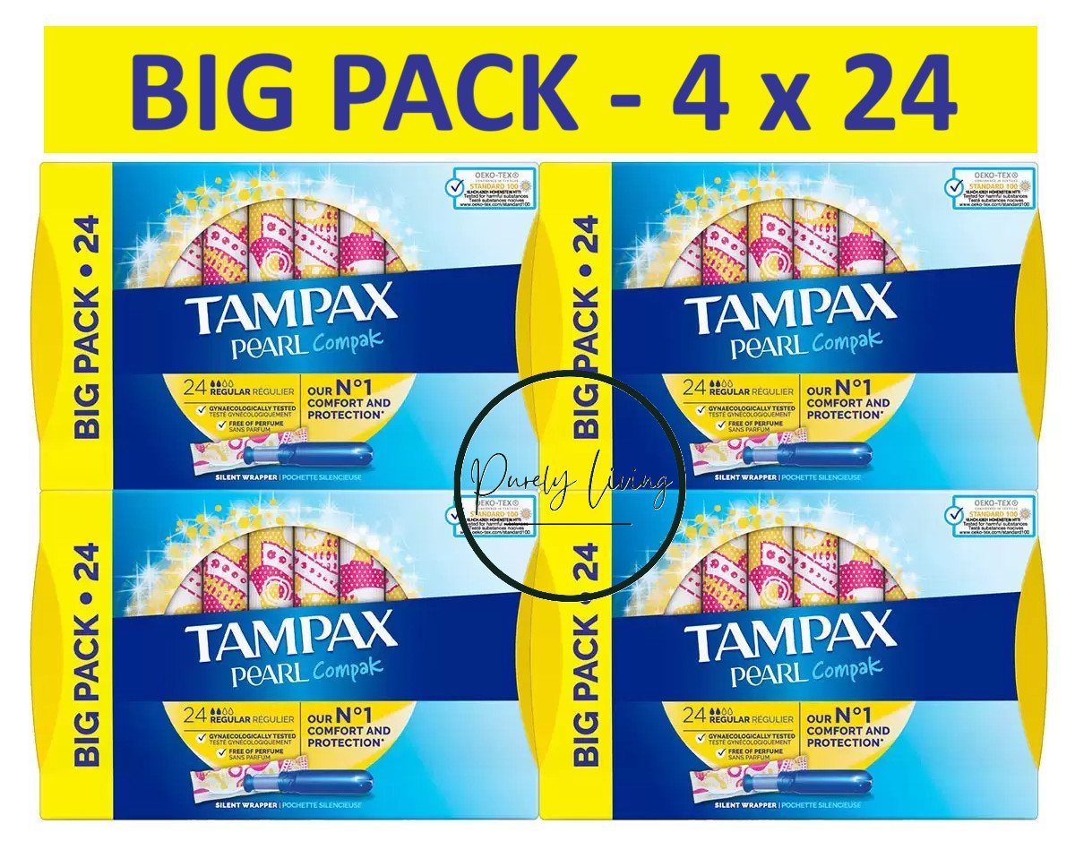 4 x 24 Tampax Pearl Compak Applicator Regular Leak Comfort Protection Tampons