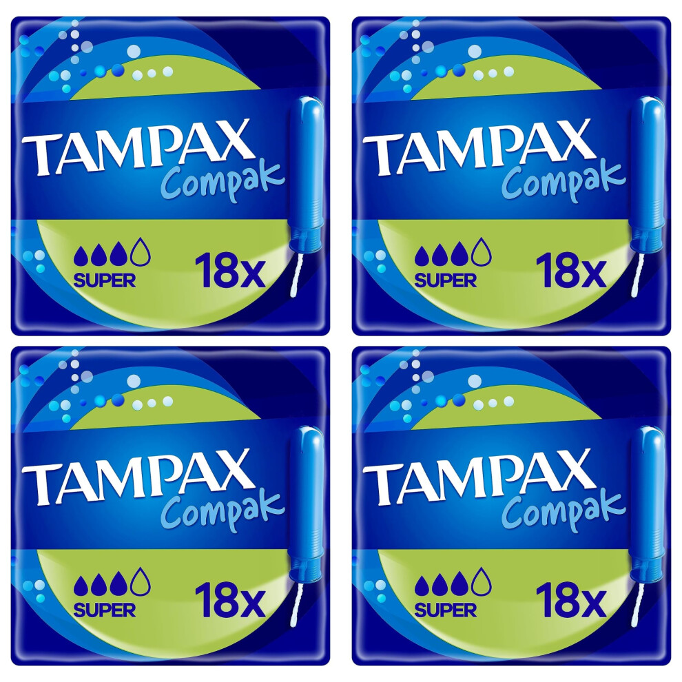 Tampons Multipack Tampax Compak | Super with Applicator | 18 x 4 Packs (72) | Value Bundle | Heavy Flow, Leak Protection