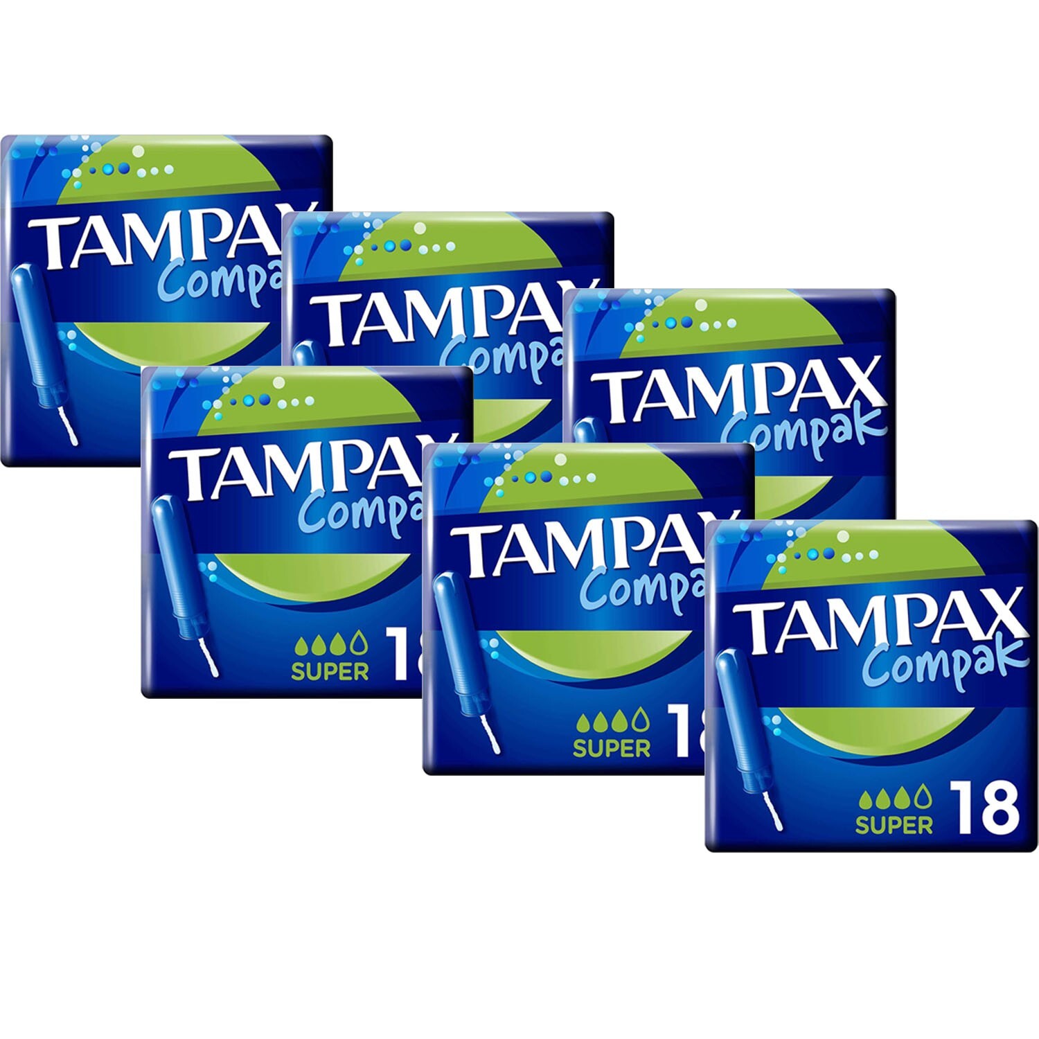 Tampax Compak Super Tampons with Plastic Applicator – Pack of 6 (18 Pcs Each)