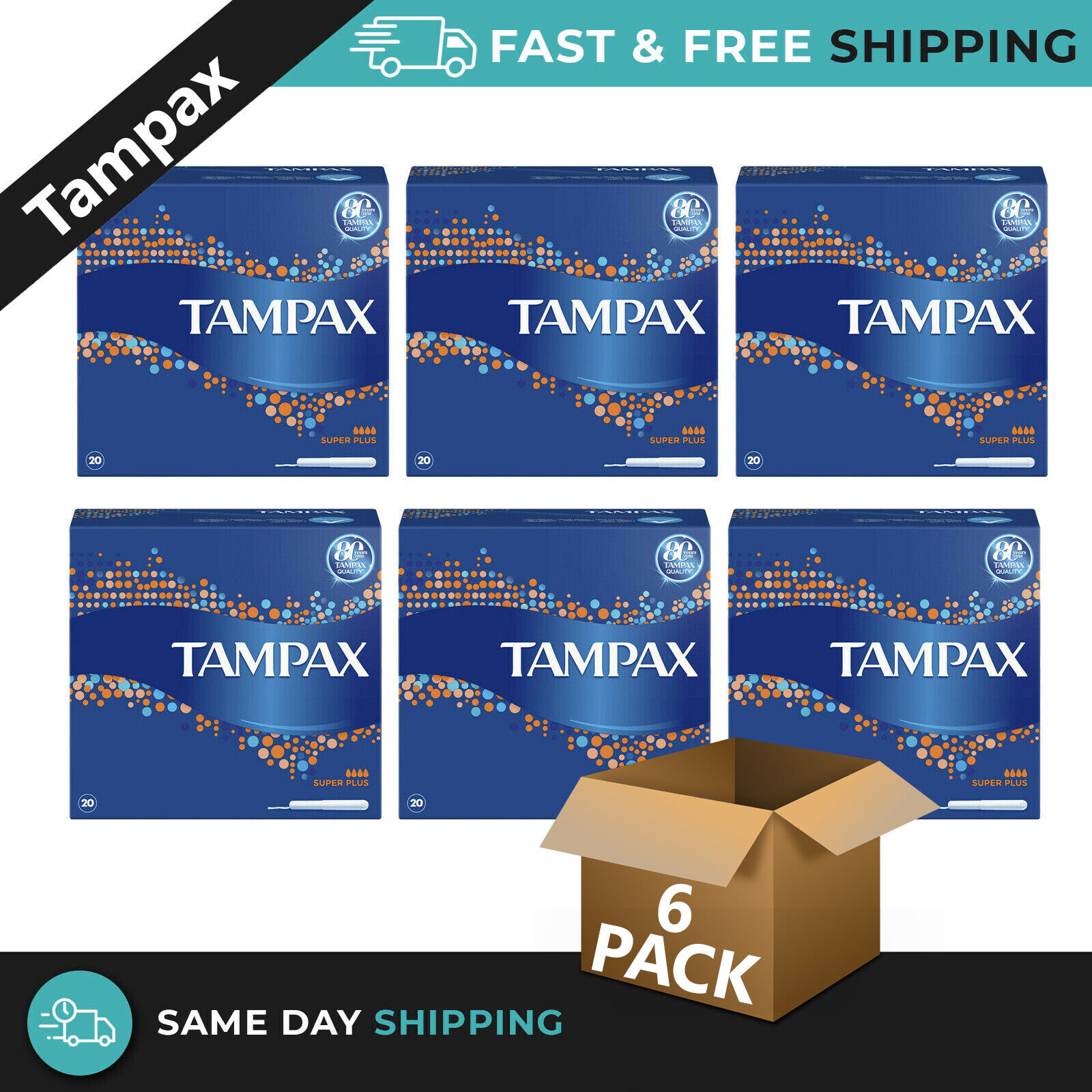 6 x Tampax Super Plus Tampons 20 Pack - 120 pads
