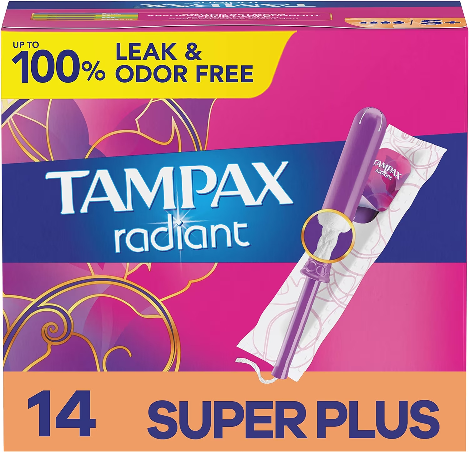 TAMPAX Radiant Tampons, Super Plus Absorbency, With Leakguard Braid, Unscented, 14 Count