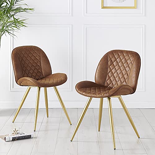 BAKULI Home Leather Dining Chair Gold Carbon Steel Frame Luxury Living Room Chairs Nordic Table(Tan)