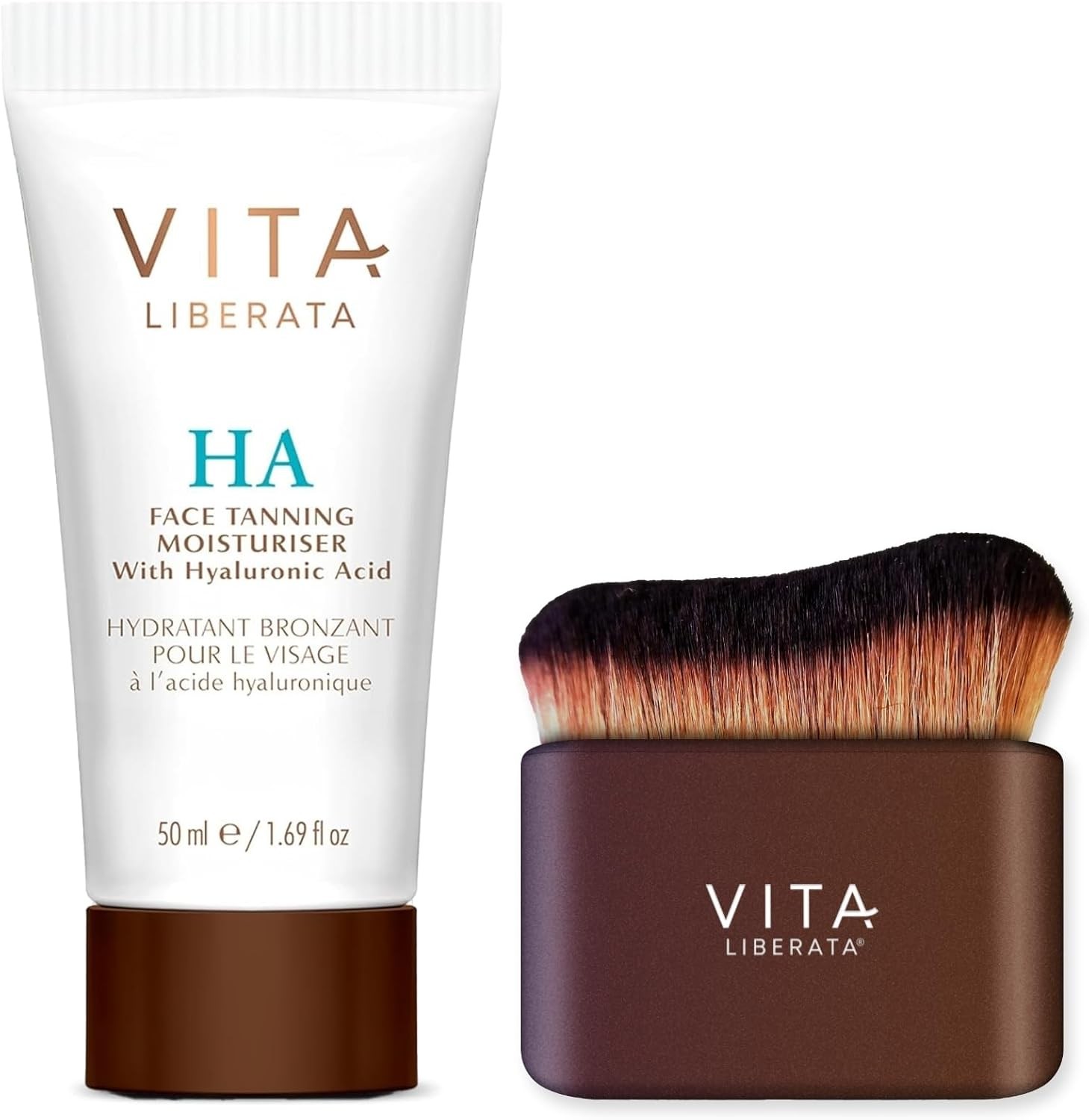VITA LIBERATA HA Face Tan 50ml & Brush Bundle, Tanning Moisturiser with Hyaluronic Acid, Hydrating Skincare, Sun-Kissed Radiant Glow, Includes Application Blending Brush, Streak Free Result