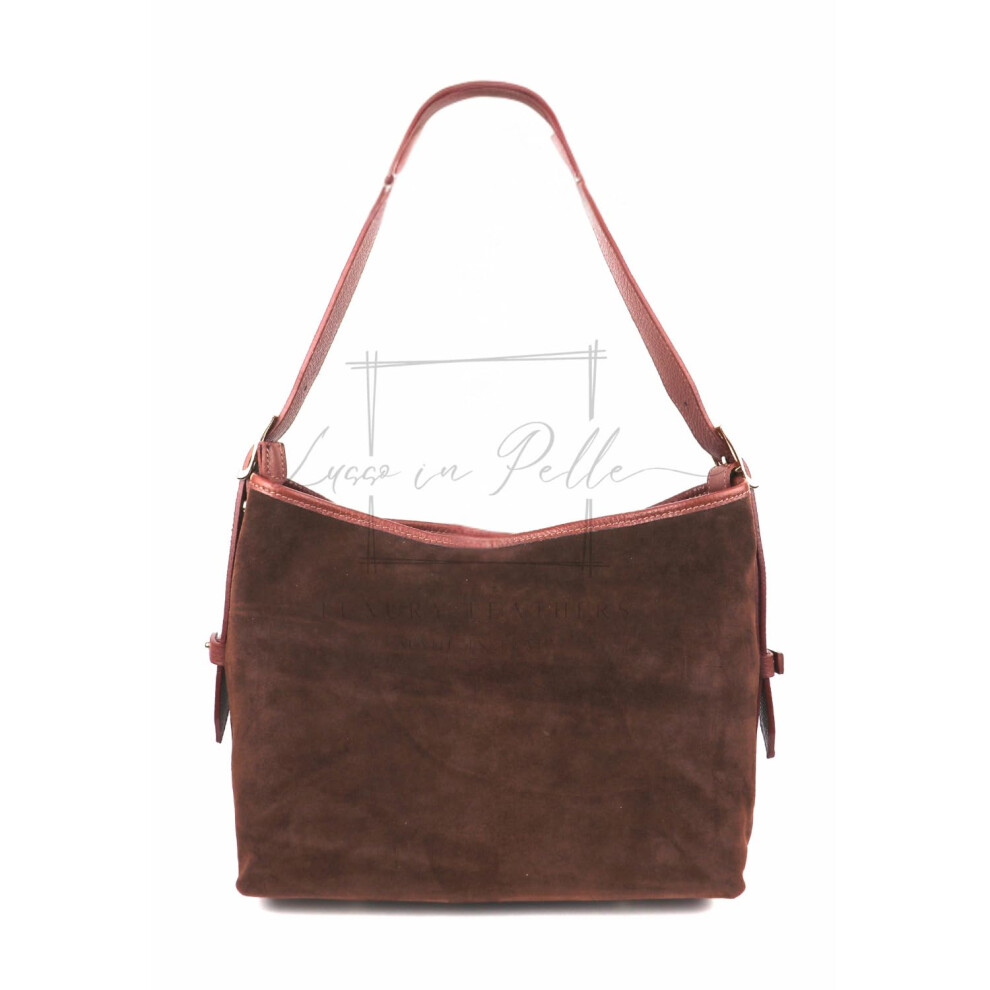 Lusso in pelle Medium Italian Suede Handbag Crossbody Shoulder Bag with Adjustable Leather Straps (Dark Tan)