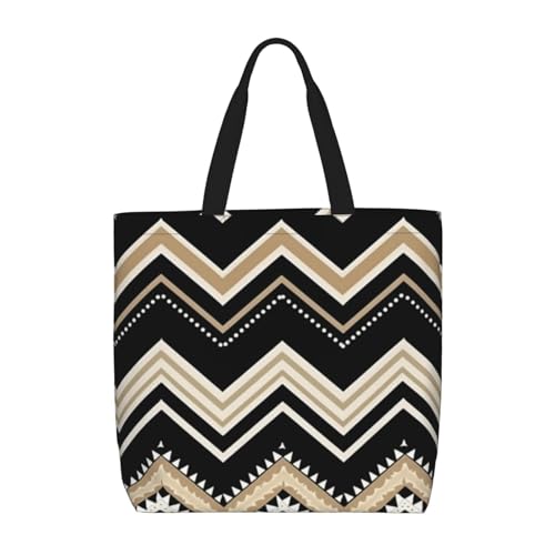FHEDVBN Black White Tan Zigzag Tote Bags for Women Canvas Tote Purse Large Shoulder Bag Aesthetic Shopping Bags Reusable Grocery Bag Hobo Bags Casual Handbags, Top Zipper Closure