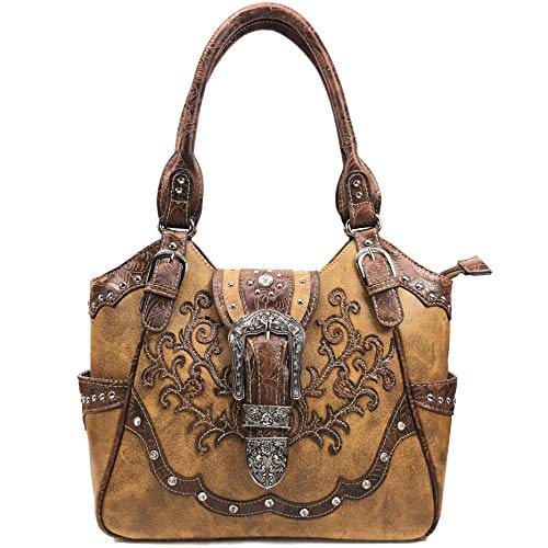 Zelris American Albino Western Floral Buckle Conceal Carry Women Tote Purse Handbag, Tan, tote