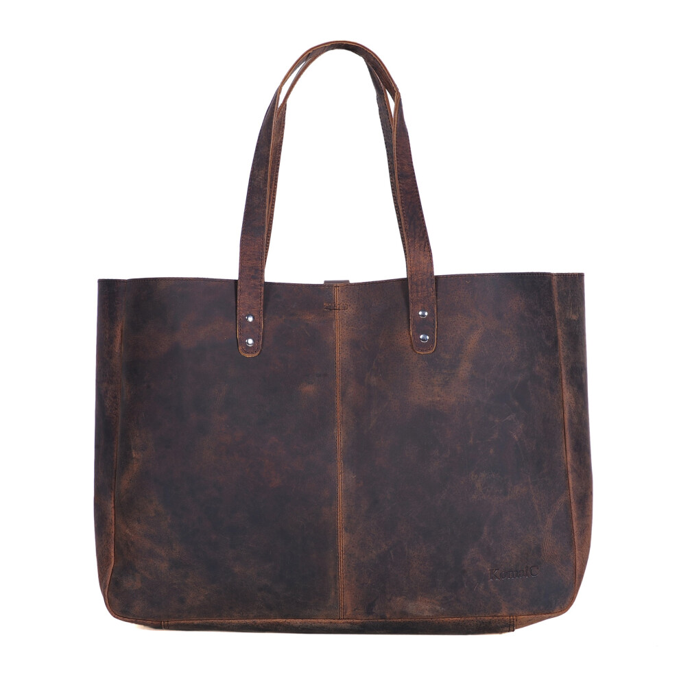 KomalC Leather Tote Bag for Women Purse Satchel Travel Bag shopping Carry Messenger Multipurpose Handbag (18.5 INCH Buffalo Distressed Tan)