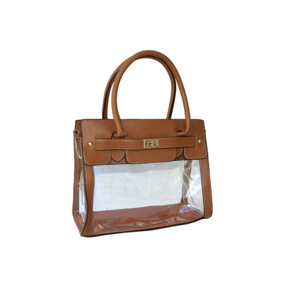 Womens Transparent See Through Tote Purse Handbag, Clear & Tan
