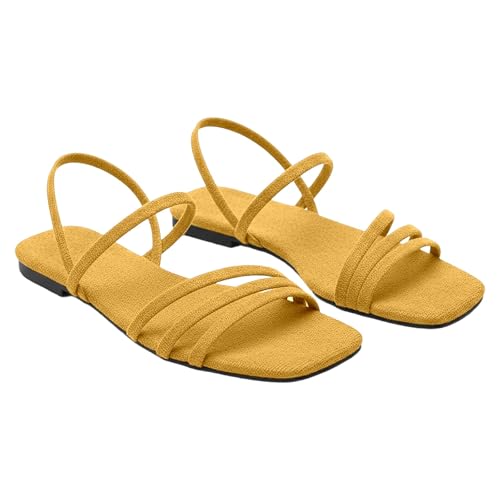 Cbebvwl Sandals for Women Womens Trainers Orthopaedic White Flower Crochet T-Bar Sandal Ladies Wide Fit Sandles Tan Women's Platform Shoes Wedges b-Yellow Size 5.5