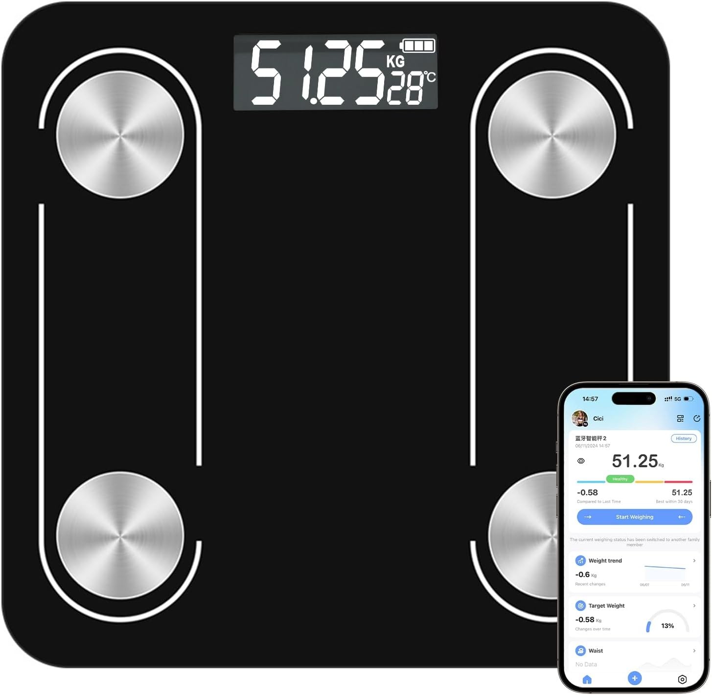 Healthkeep Scales for Body Weight with App 13 Body Composition Metrics, Digital Bathroom Scales with Bluetooth Weighing Scale, App Compatible with iOS Android 11 * 11 Iches (Black)