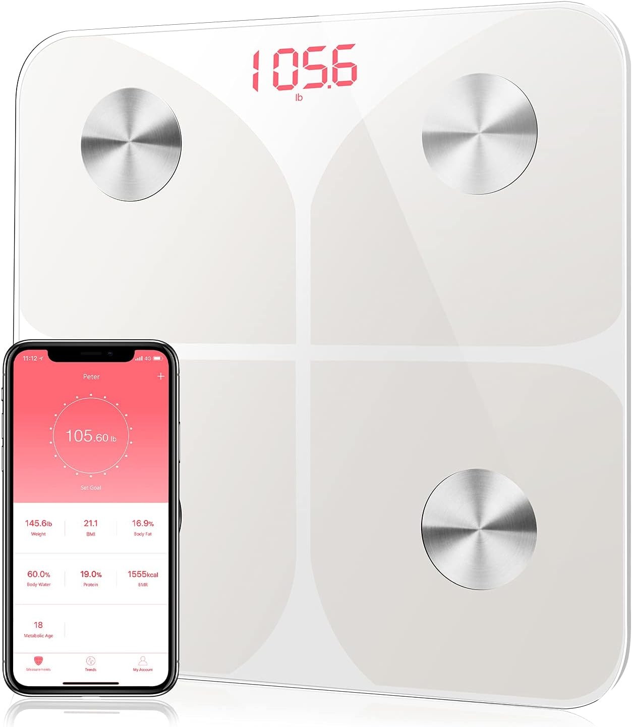 RENPHO Body Fat Scale Bluetooth, Digital Scales for Weight Bathroom Weighing Smart BMI Scales, Composition Monitors with Smartphone A