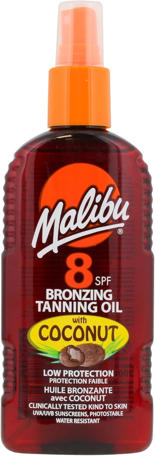 Sun SPF 8 Bronzing Tanning Oil, Water Resistant, Coconut Scented, 200Ml