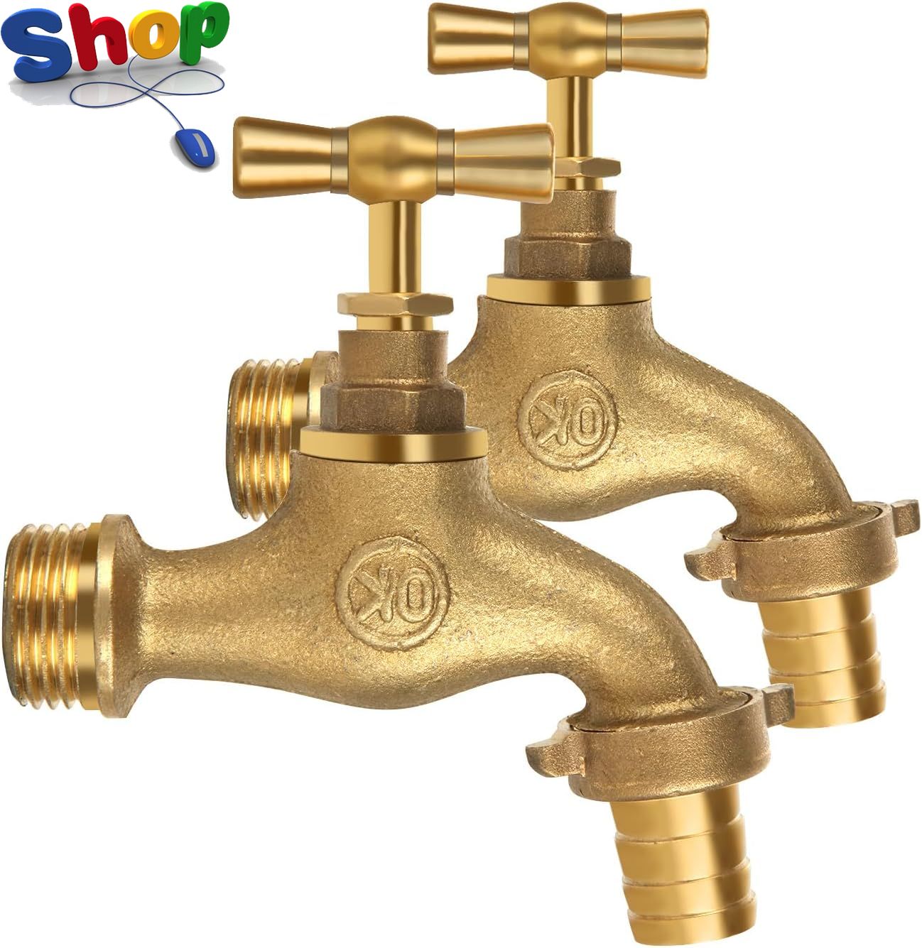 1/2" Outdoor Garden Tap Garden Hose Brass Taps 2Pcs Outdoor Brass Bib Taps for W