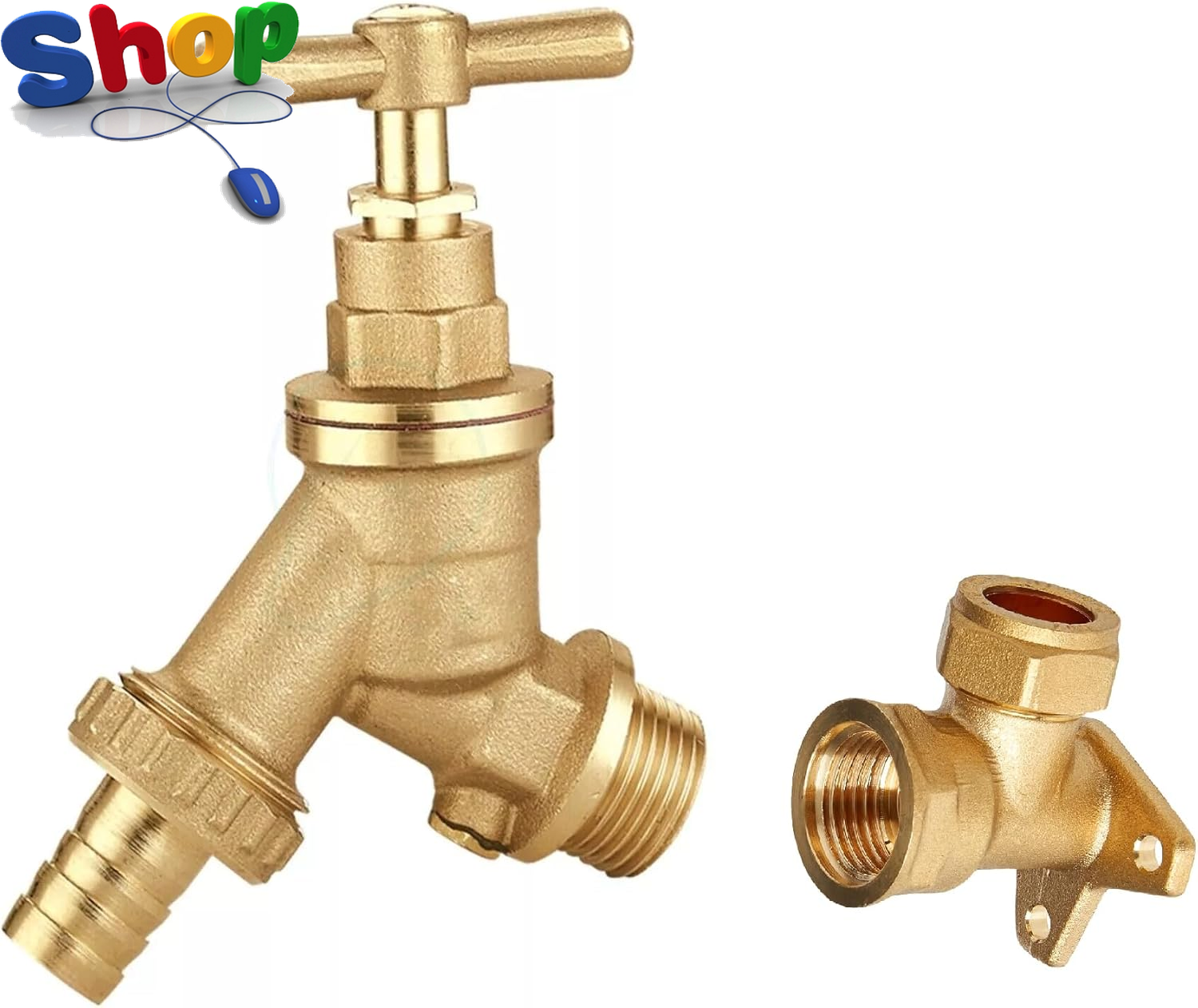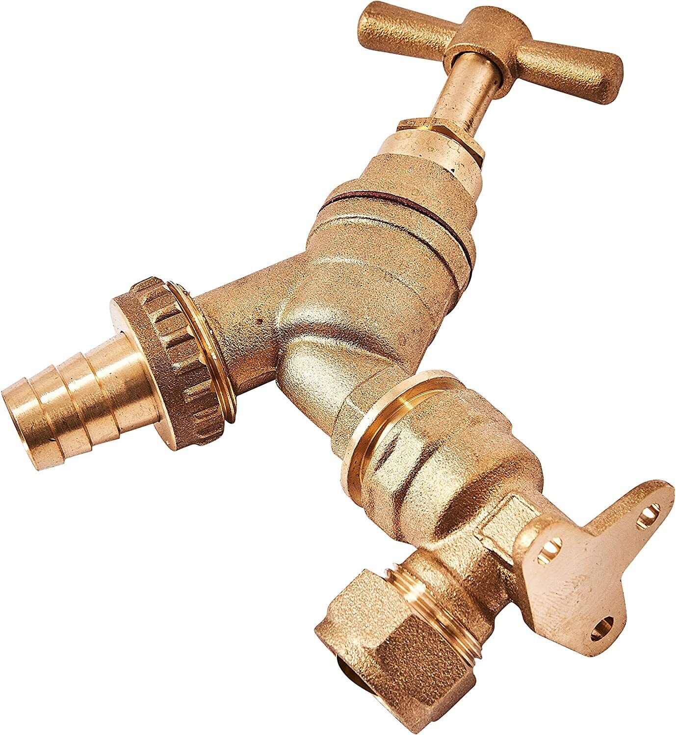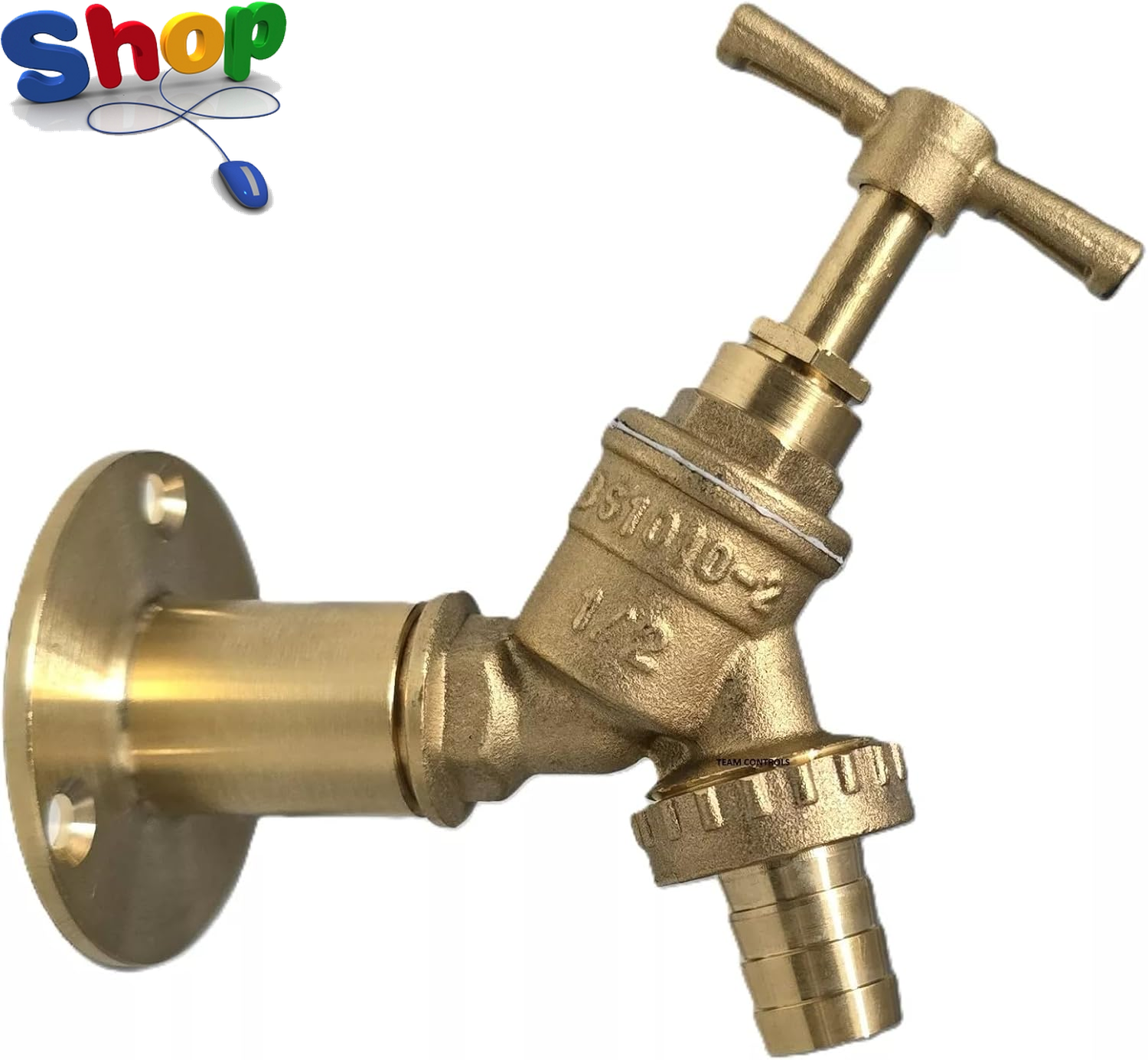 TC Garden TAP Hose Union BIB TAP 1/2" Brass with Wall Plate Elbow 15Mm X 1/2" Co