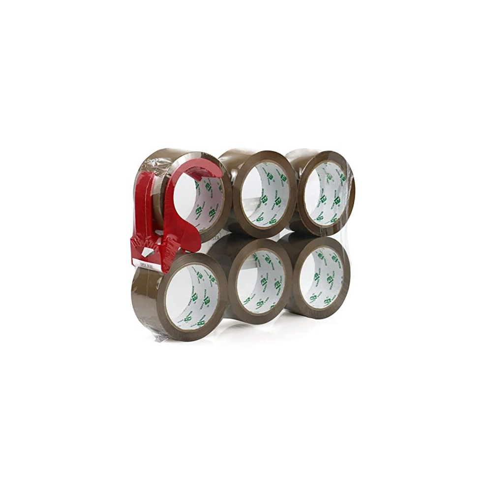 Episent Heavy Duty Packaging Tape Gun Dispenser with 6 Brown Tape Rolls | 48MM x 66M | Ideal for Parcel Boxes or General Packing | Tape Gun Included