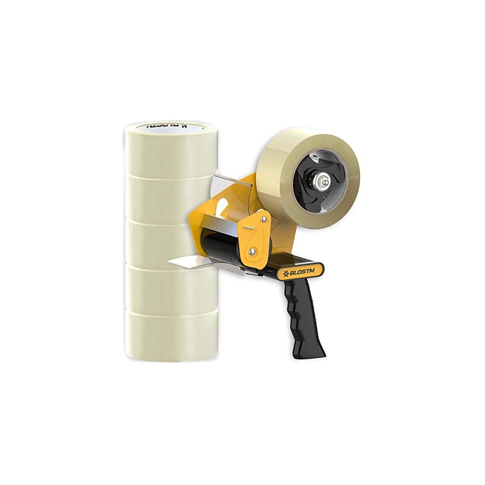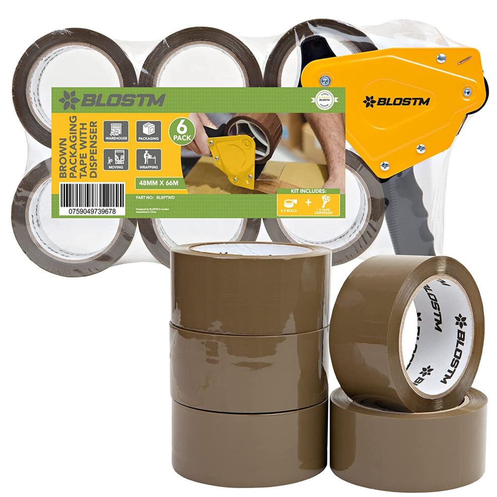 BLOSTM Tape Gun & Strong Packaging Dispenser 6 Rolls Brown Sealing Parcel Boxes