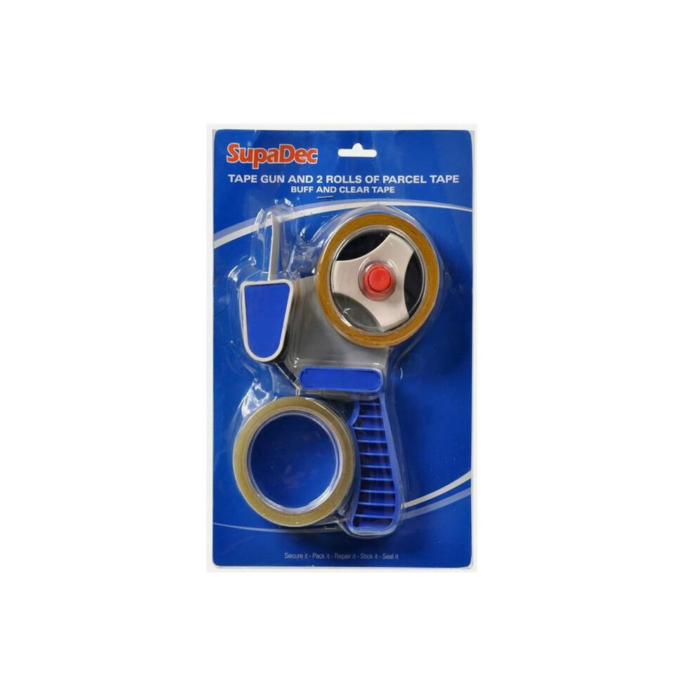 SupaDec Tape Gun & 2 Rolls Parcel Tape Dispenser Buff Clear - 511092