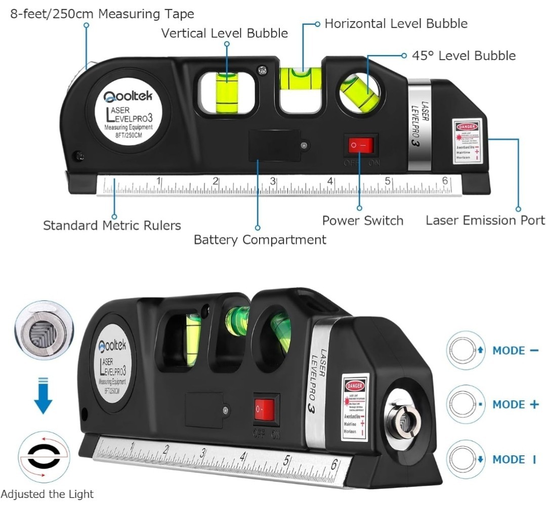 Tape Measure MultiPurpose DIY Spirit Level with Laser Horizontal Cross Rule Tool