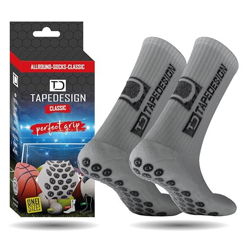 Tapedesign - "Classic 1 Pair Non-Slip Football Grip Socks Light-Grey (Size 5-14) Men, Women & Kids - Soccer Socks for Adults & Youth (Unisex) - Anti-Slip Sport Socks for Basketball, Tennis & Running