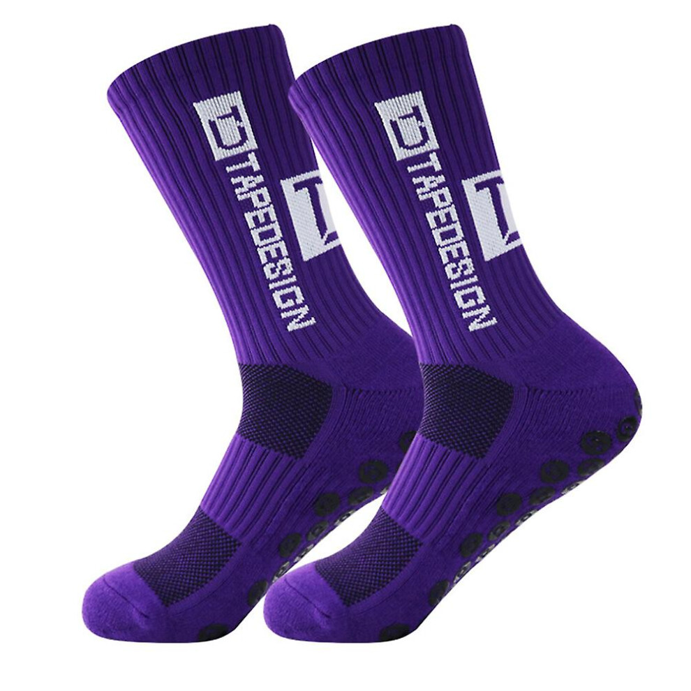 Tapedesign - "Classic 1 Pair Non-Slip Football Grip Socks Purple (Size 5-14) for Men, Women & Kids - Soccer Socks for Adults & Youth (Unisex) - Anti-Slip Sport Socks for Basketball, Tennis & Running