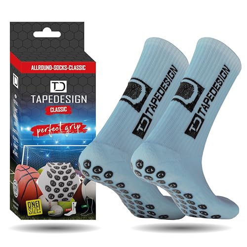 Tapedesign - "Classic 1 Pair Non-Slip Football Grip Socks Light-Blue (Size 5-14) Men, Women & Kids - Soccer Socks for Adults & Youth (Unisex) - Anti-Slip Sport Socks for Basketball, Tennis & Running