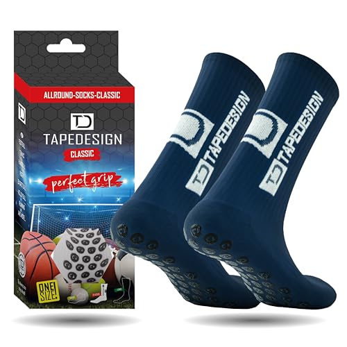 Tapedesign - "Classic 1 Pair Non-Slip Football Grip Socks Navy (Size 5-14) for Men, Women & Kids - Soccer Socks for Adults & Youth (Unisex) - Anti-Slip Sport Socks for Basketball, Tennis & Running