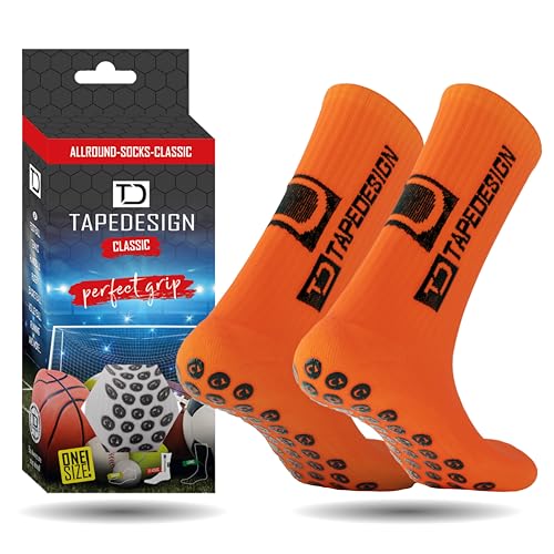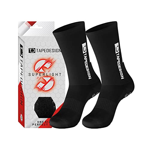 Tapedesign - "Classic 1 Pair Non-Slip Football Grip Socks Black (Size 5-14) for Men, Women & Kids - Soccer Socks for Adults & Youth (Unisex) - Anti-Slip Sport Socks for Basketball, Tennis & Running