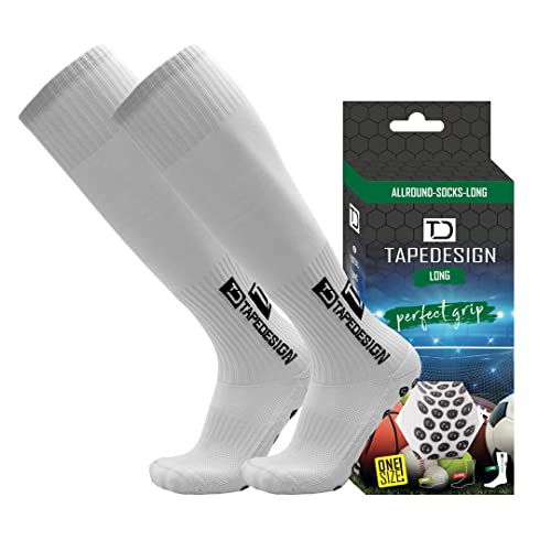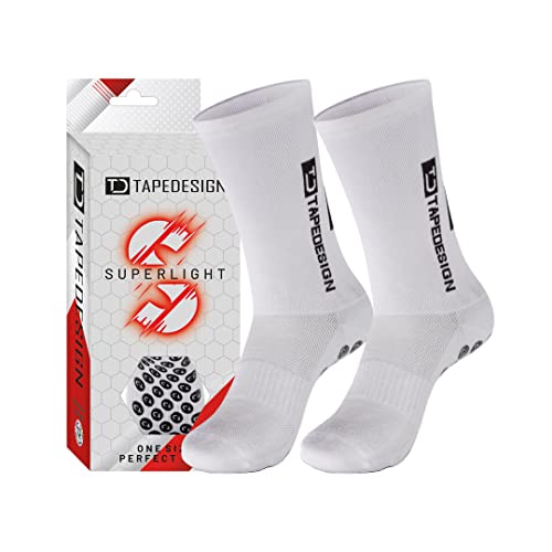 Tapedesign - "Classic 1 Pair Non-Slip Football Grip Socks Light-Grey (Size 5-14) Men, Women & Kids - Soccer Socks for Adults & Youth (Unisex) - Anti-Slip Sport Socks for Basketball, Tennis & Running