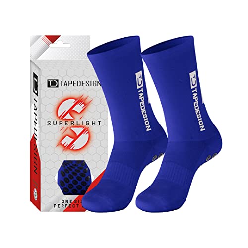Tapedesign - "Classic 1 Pair Non-Slip Football Grip Socks Blue (Size 5-14) for Men, Women & Kids - Soccer Socks for Adults & Youth (Unisex) - Anti-Slip Sport Socks for Basketball, Tennis & Running