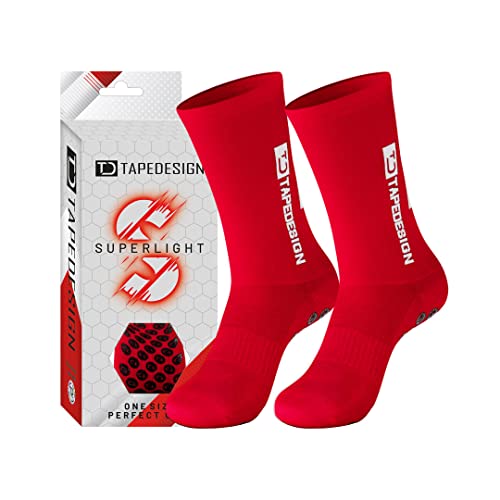 Tapedesign - "Classic 1 Pair Non-Slip Football Grip Socks Red (Size 5-14) for Men, Women & Kids - Soccer Socks for Adults & Youth (Unisex) - Anti-Slip Sport Socks for Basketball, Tennis & Running