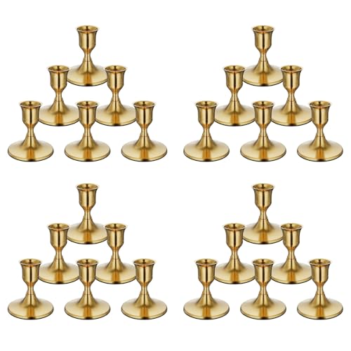 Ujjdwiurgh 24PCS Brass Gold Taper Candle Holders, Vintage Metal Candlestick Holders for Dinner Room Table Centerpiece or Mantel