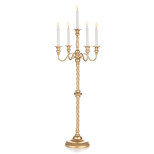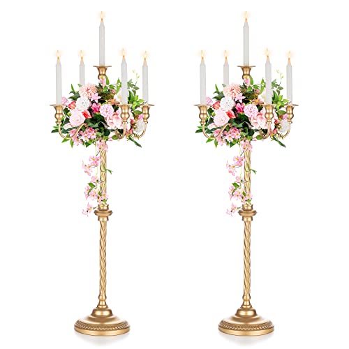 Sziqiqi 88cm Gold Candelabras Tall Candlestick Holders - Metal Taper Candle Stick Holders for Christmas Table Centerpieces Vintage 5 Branches Candle Holder for Dining Table Wedding Party Birthday