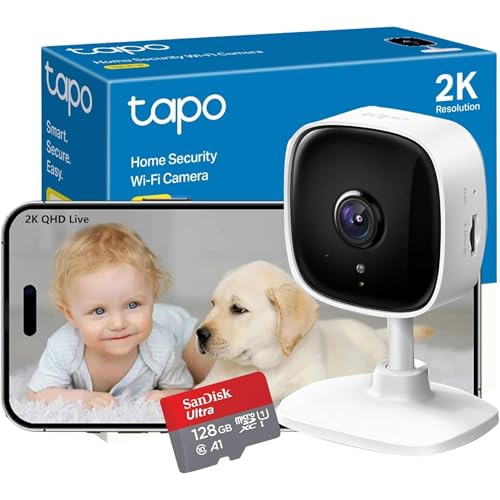 Tapo & SanDisk SD Card Bundle: Wifi Camera, Indoor Camera for Security, 2K 3MP Pet Camera, Wireless 360° for Baby Monitor, sell with 128GB SD Card