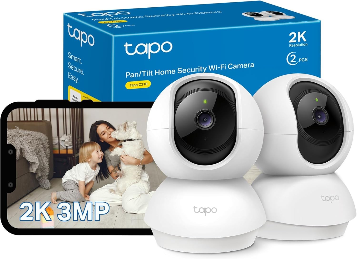 Tapo Wifi Indoor Camera, 2K 3MP Full HD Baby Camera, 360° Security Wireless Pet Camera, Night Vision, Work with Alexa & Google Home, 2 Pack(Tapo C210P2) (Package may vary)