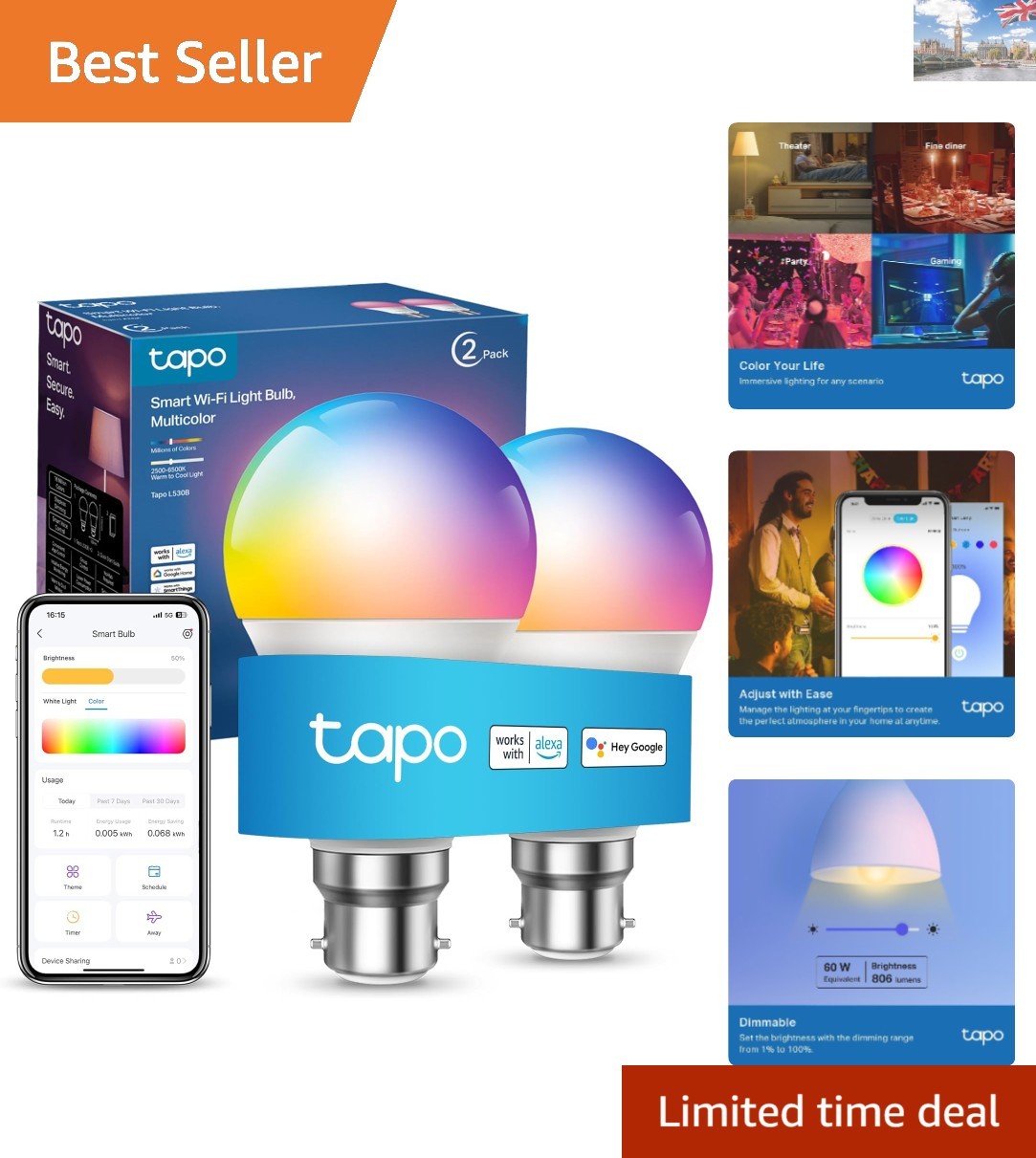 Tapo L530B (2-Pack) Smart Bulb, B22 Colour Changing Light Alexa Light...