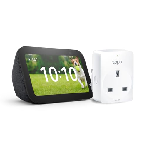 Echo Show 5 (3rd generation) | Charcoal + TP-Link Tapo P110M Smart Plug with Energy Monitoring, Works with Alexa - Smart Home Starter Kit