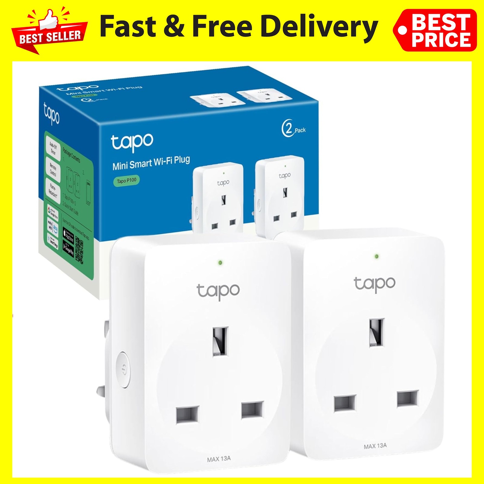 Tapo P100 Smart Plug – Wi‑Fi, Alexa & Google Voice, Remote Timer UK