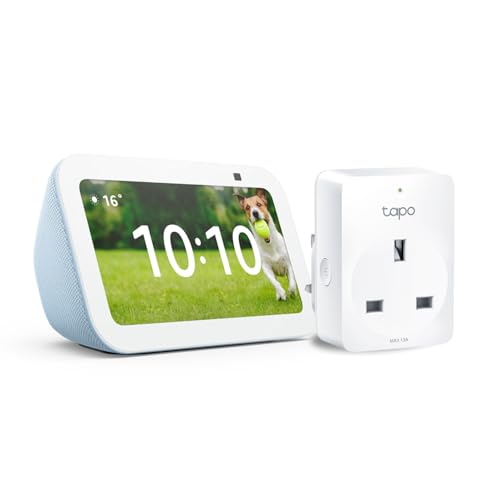 Echo Show 5 (3rd generation) | Cloud Blue + TP-Link Tapo P110M Smart Plug with Energy Monitoring, Works with Alexa - Smart Home Starter Kit