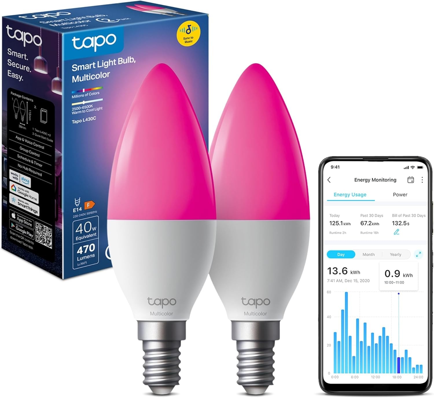 Tapo L430C Smart Bulb 2-Pack E14 LED Colour Changing Dimmable Alexa Google