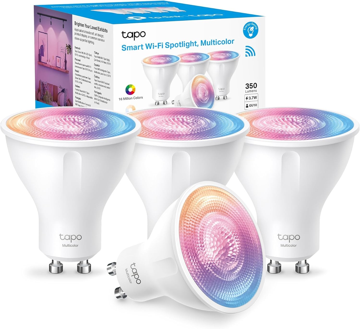 Tapo L630 (4-Pack) Smart Bulb, Alexa Light Bulb, Smart Light Bulb Spotlight, GU10 Lamp Base, 16 Million Colours, White Tunable, High Lumen & Dimmable,