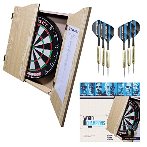 Target Darts Home Darts Cabinet Set - World Champions Dartboard with 2 Sets of Darts, Light Brown