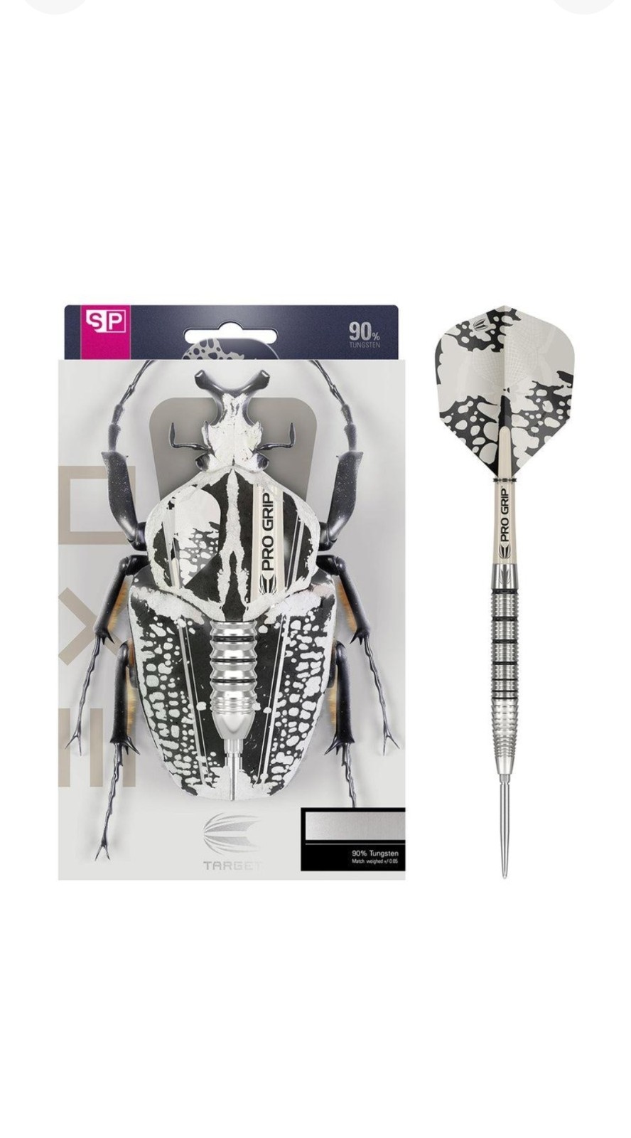 Target Darts EXO Edition 90% Tungsten Steel Tip Darts Set – 23g Barrel SP03 – Steel Tip Dart Set, Swiss Point Darts with Pro Grip Shafts and No.6 Flights, SP Tool Included