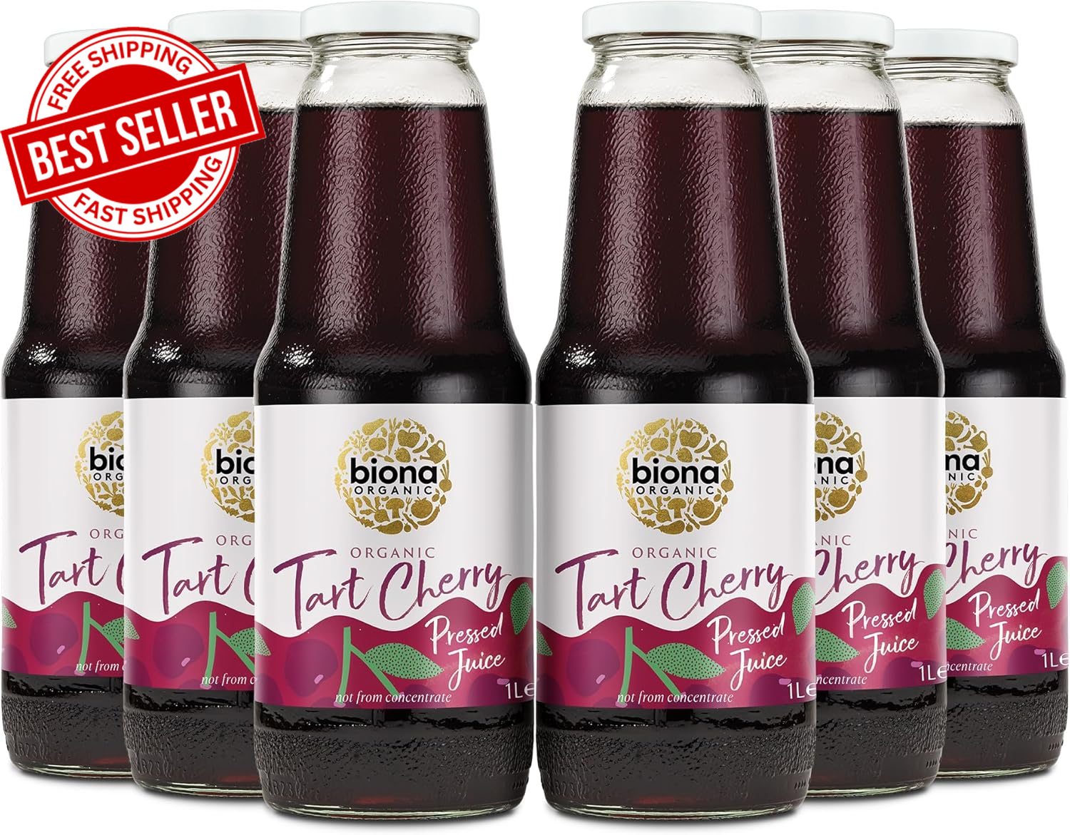 Biona Organic Tart Cherry Juice Multipack 6x1L - Not from Concentrate - Pressed Fruit Juice - Freshly Harvested by Organic Farmers - Source of Vitamins and Antioxidants