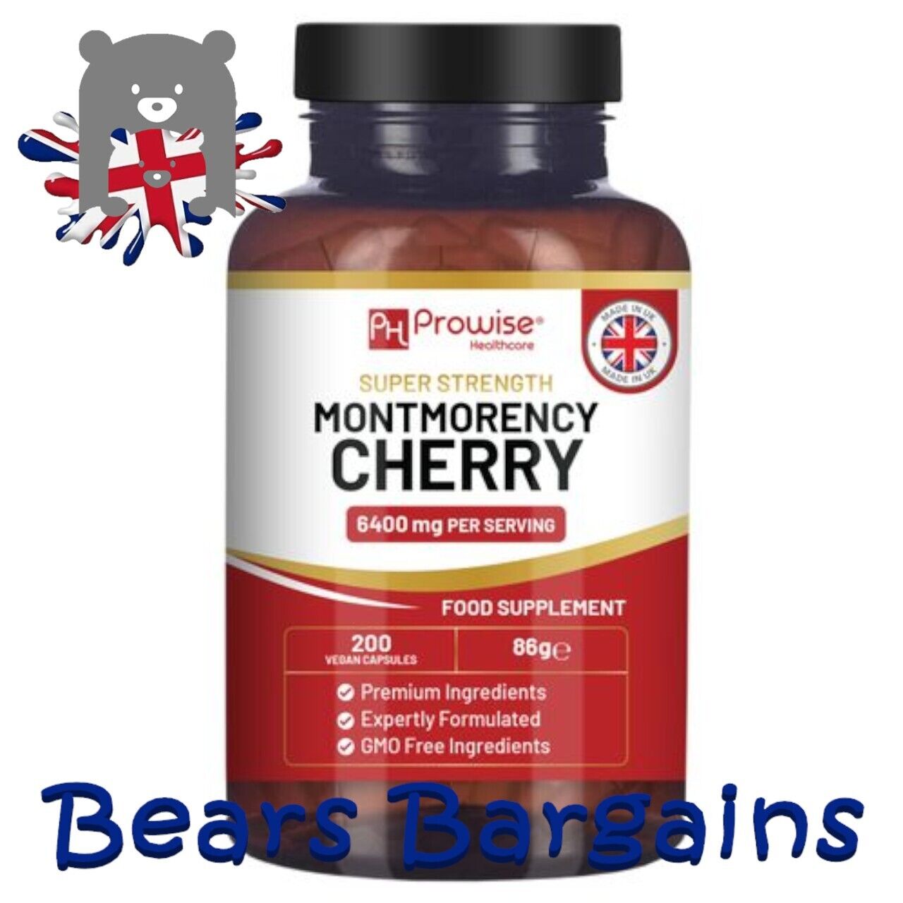 Montmorency Cherry 6400mg 200 Capsules Natural Tart Cherry Extract Supplement