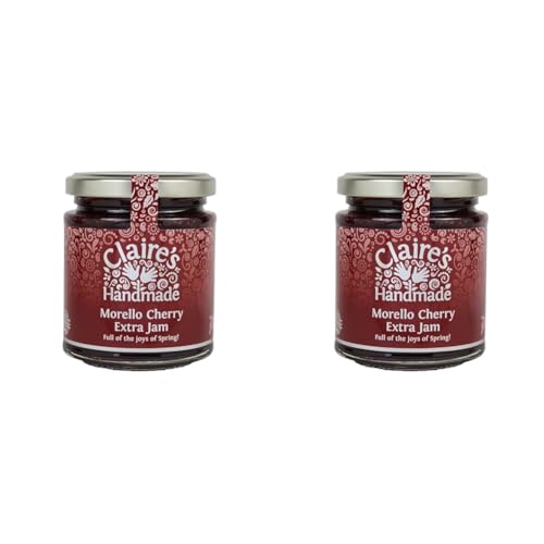 Claire's Handmade Morello Cherry Extra Jam - Award Winning Rich Cherry Flavour Traditionally Made Great Tart Filling Gluten-Free Non-GMO Suitable for Vegetarians & Vegans - 227g Jar (Pack of 2)