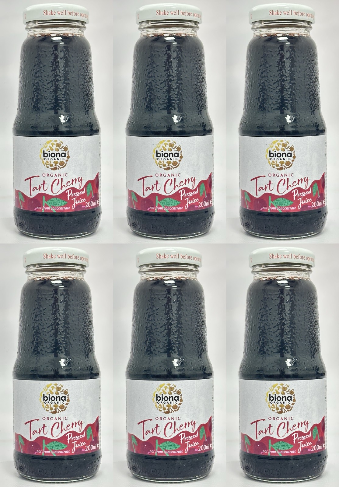 Biona Organic Tart Cherry Juice 6x200ml Not From Concentrate Glass Bottles