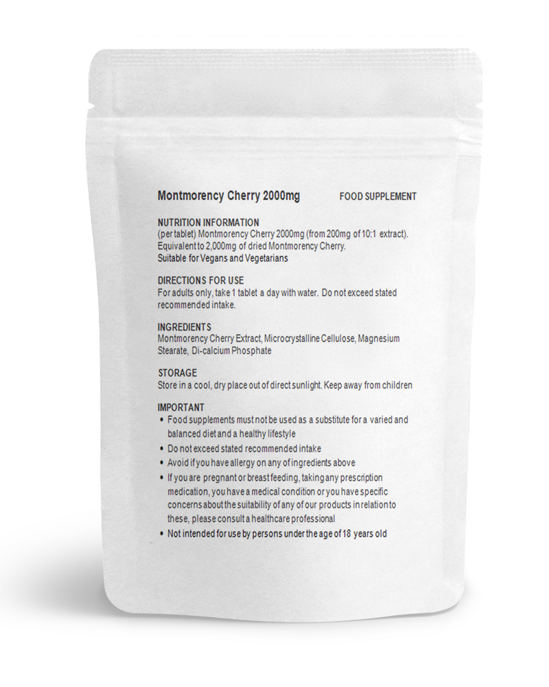 Concentrated Tart Montmorency Cherry 2000mg - 60 Tablets - High Strength, UK (V)