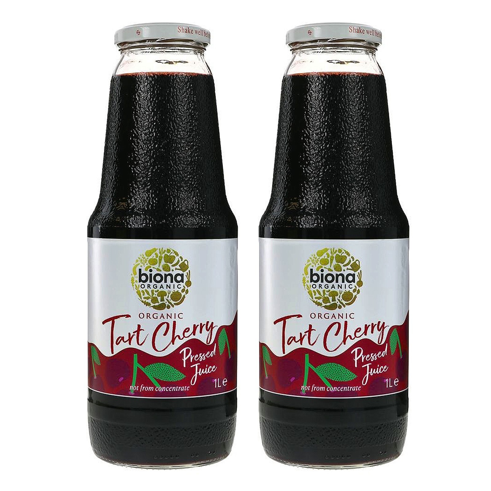 2 x Biona Tart Cherry Juice 1 Litre Organic Cold Pressed Pure Fruit Juice 1000ml
