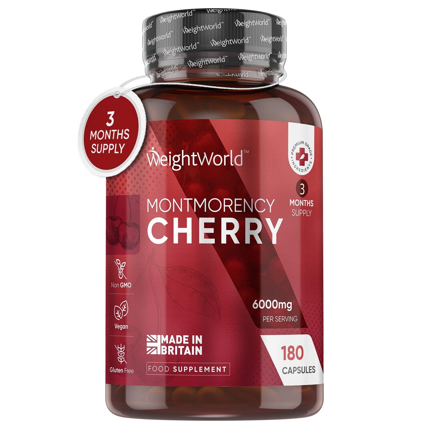 Montmorency Cherry Capsules 6000mg - 180 Tart Cherry Capsules(3 Months Supply